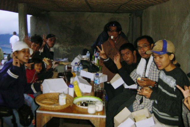 かなり寒い 頂上で日の 出まで朝食を 食べて待つ事に。