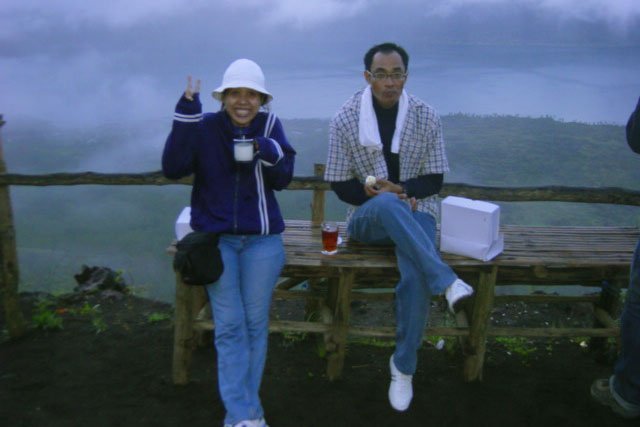 眼下には バトゥール湖が 広がりその 奥には アグン山も 見る事が出来、 登ってきた 苦労が 報われた 感じがしました。