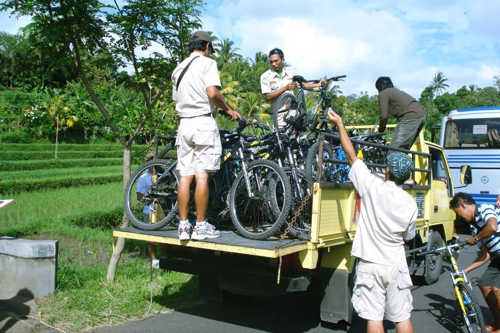 ボスのスカルバ、スパルタ、アユ、マデ、みんな気持ちよさそうにサイクリングしています。