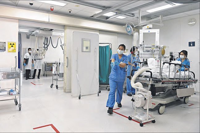 集中治療部門には、広いスペースに4床のベッドが設置され(集中隔離治療室1床含む)、